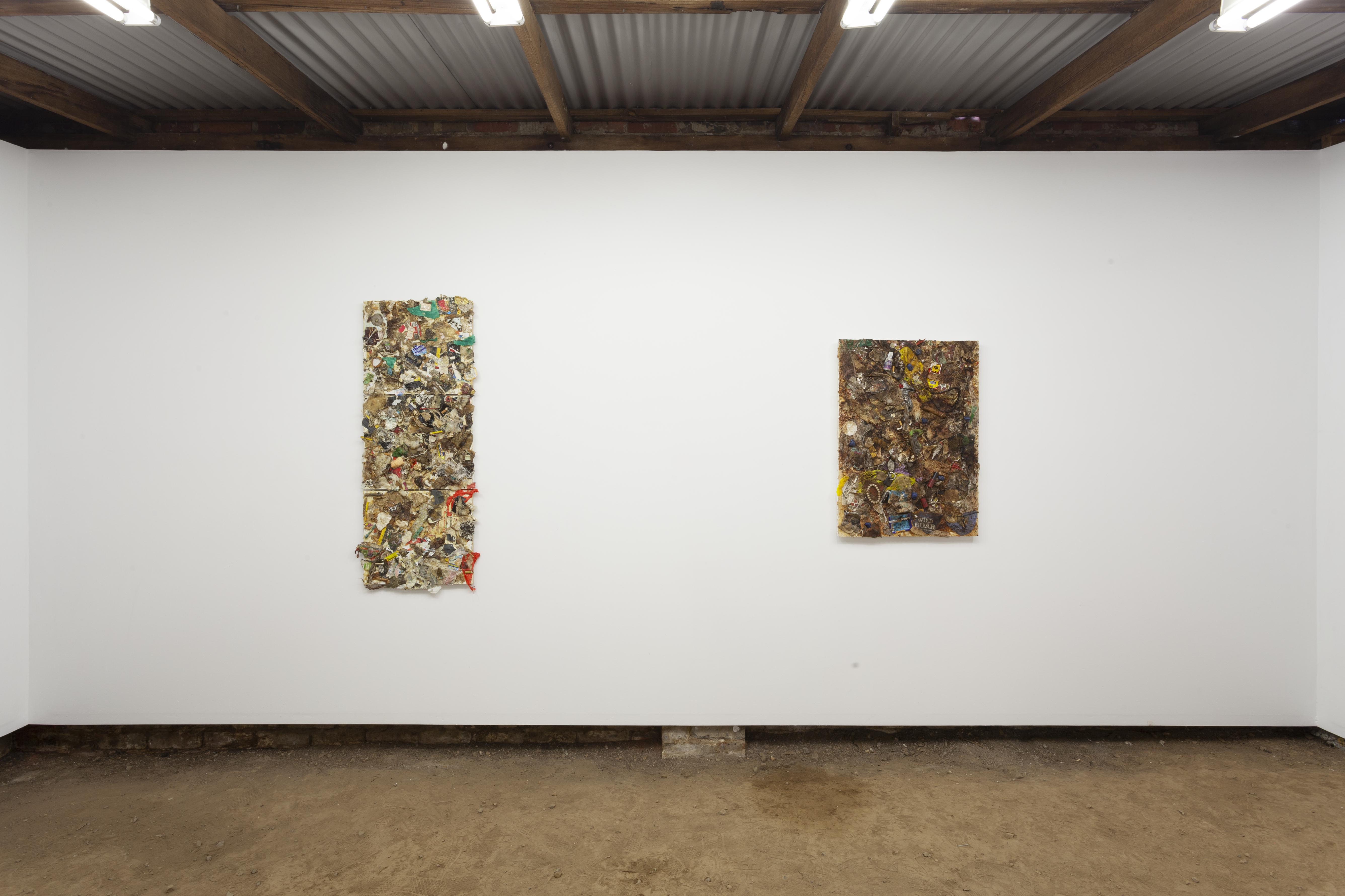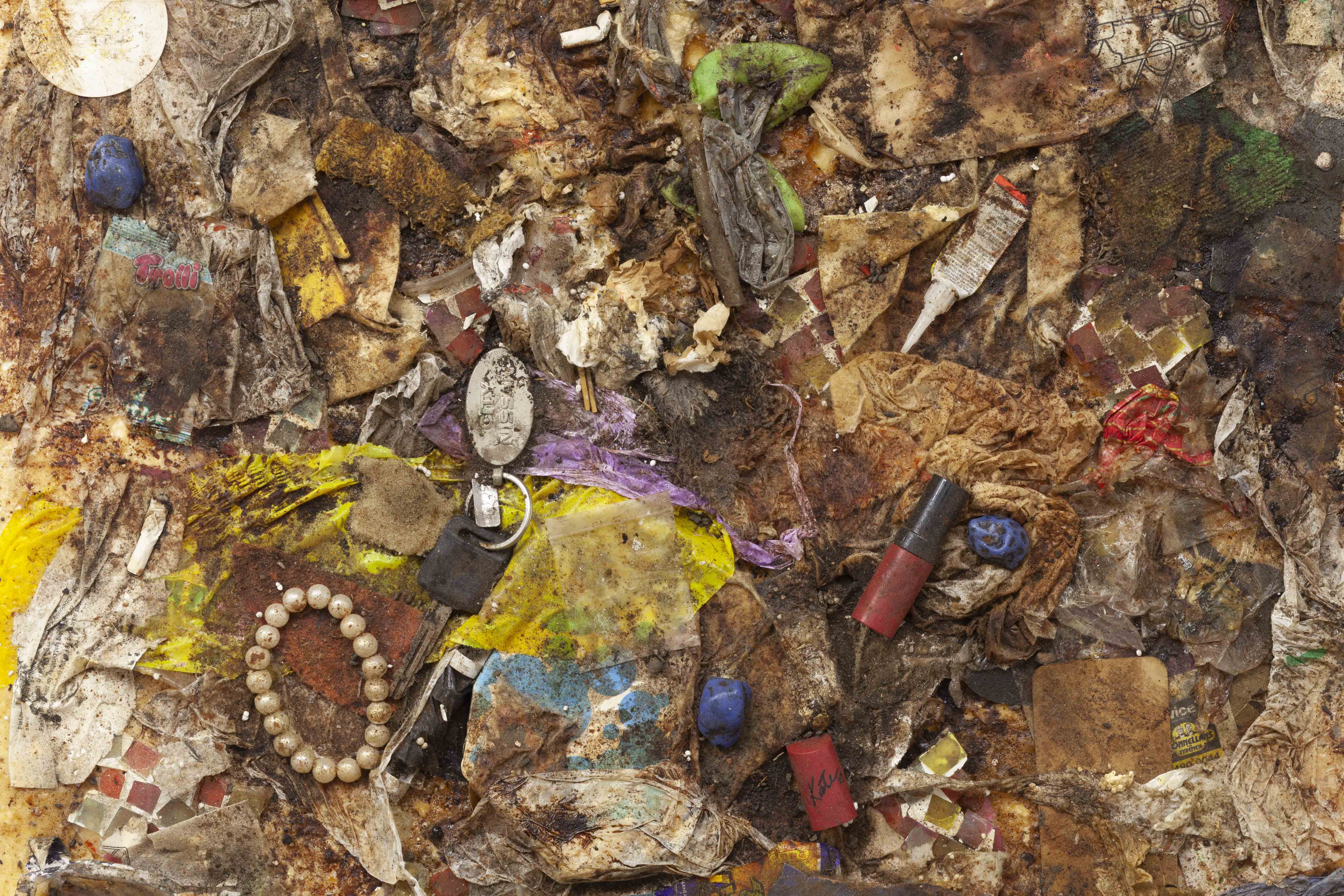 Disposal platter, 2017, objects on polystyrene, soup mix