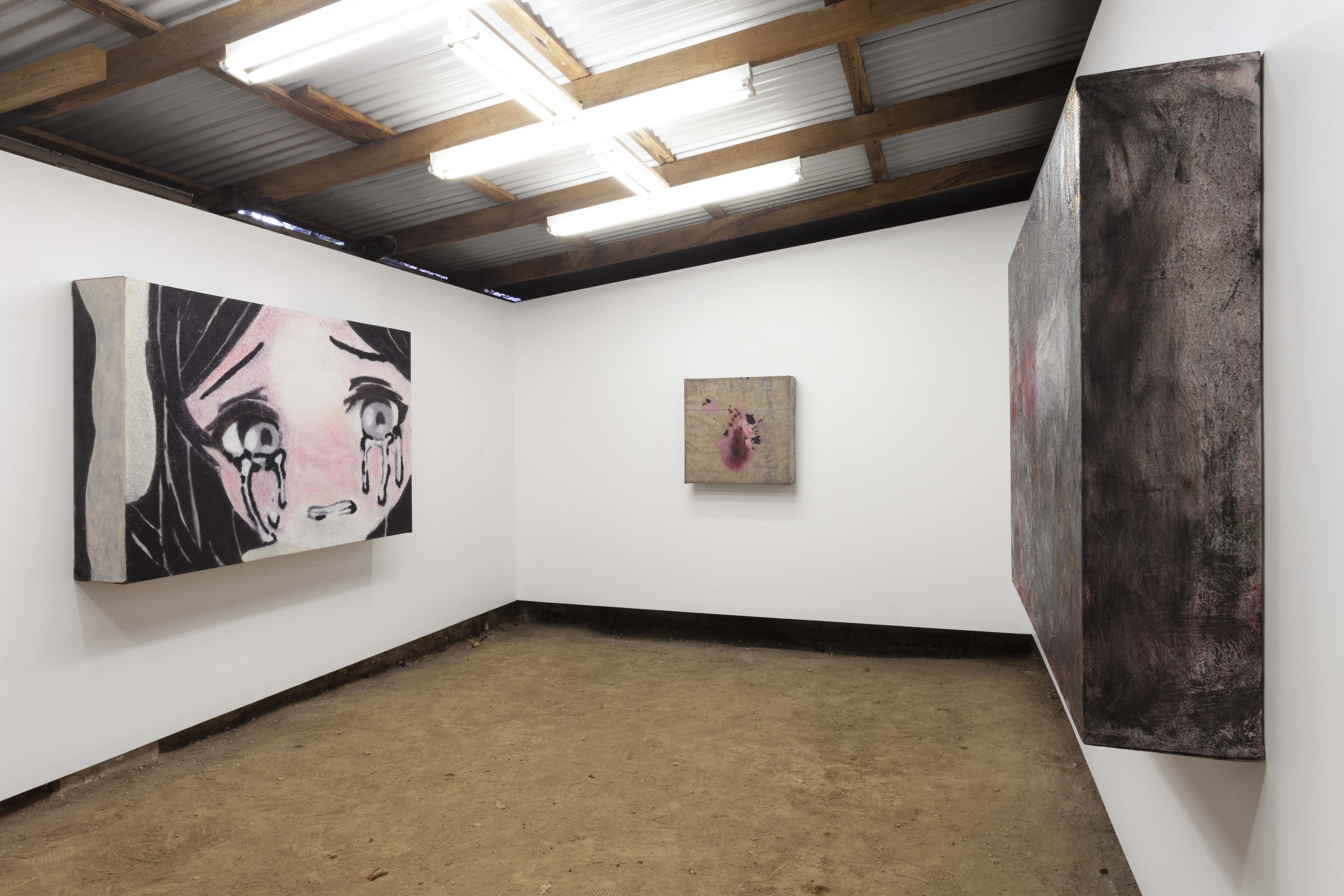 Lipstick abstract, shit, oil and glitter on canvas, 2021