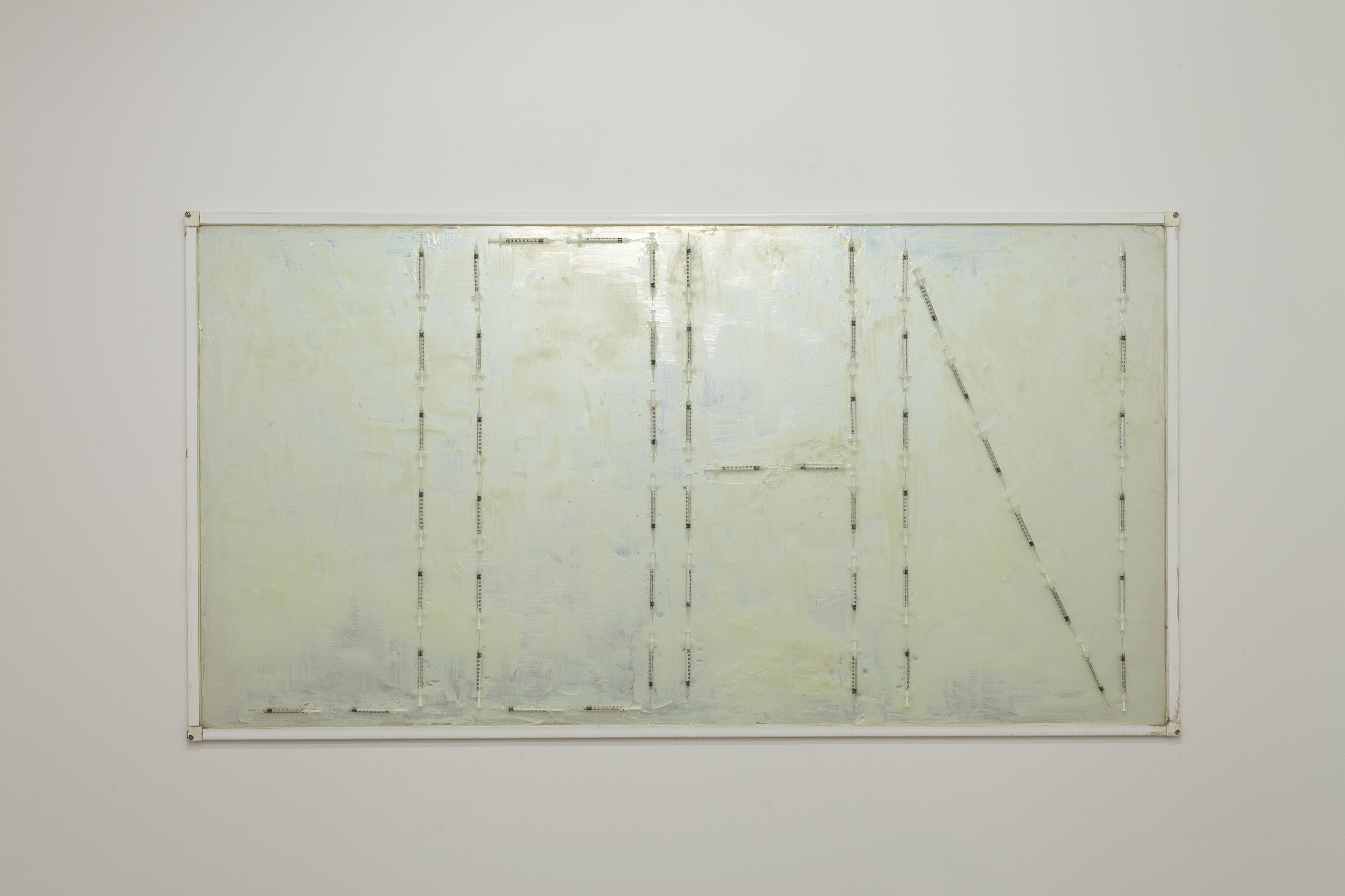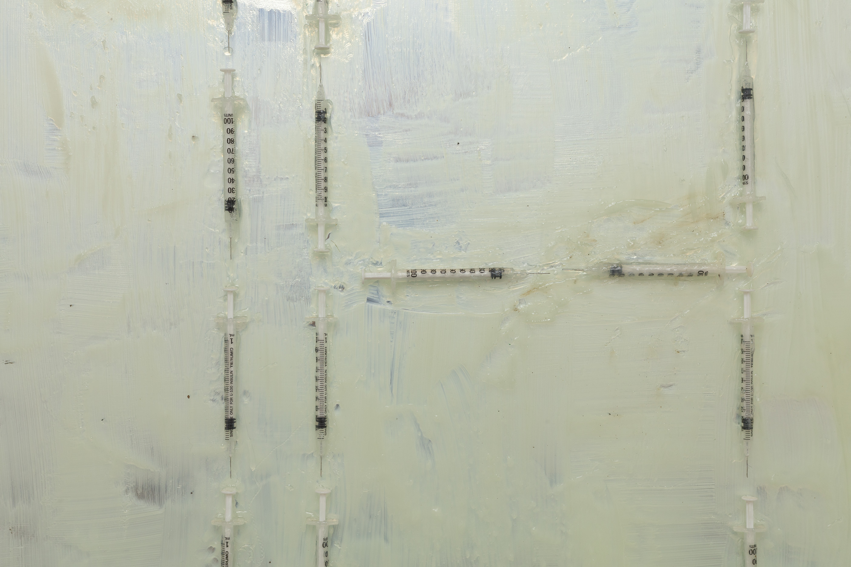 JOHN, framed mirror, terumo syringes, dirt, adhesive