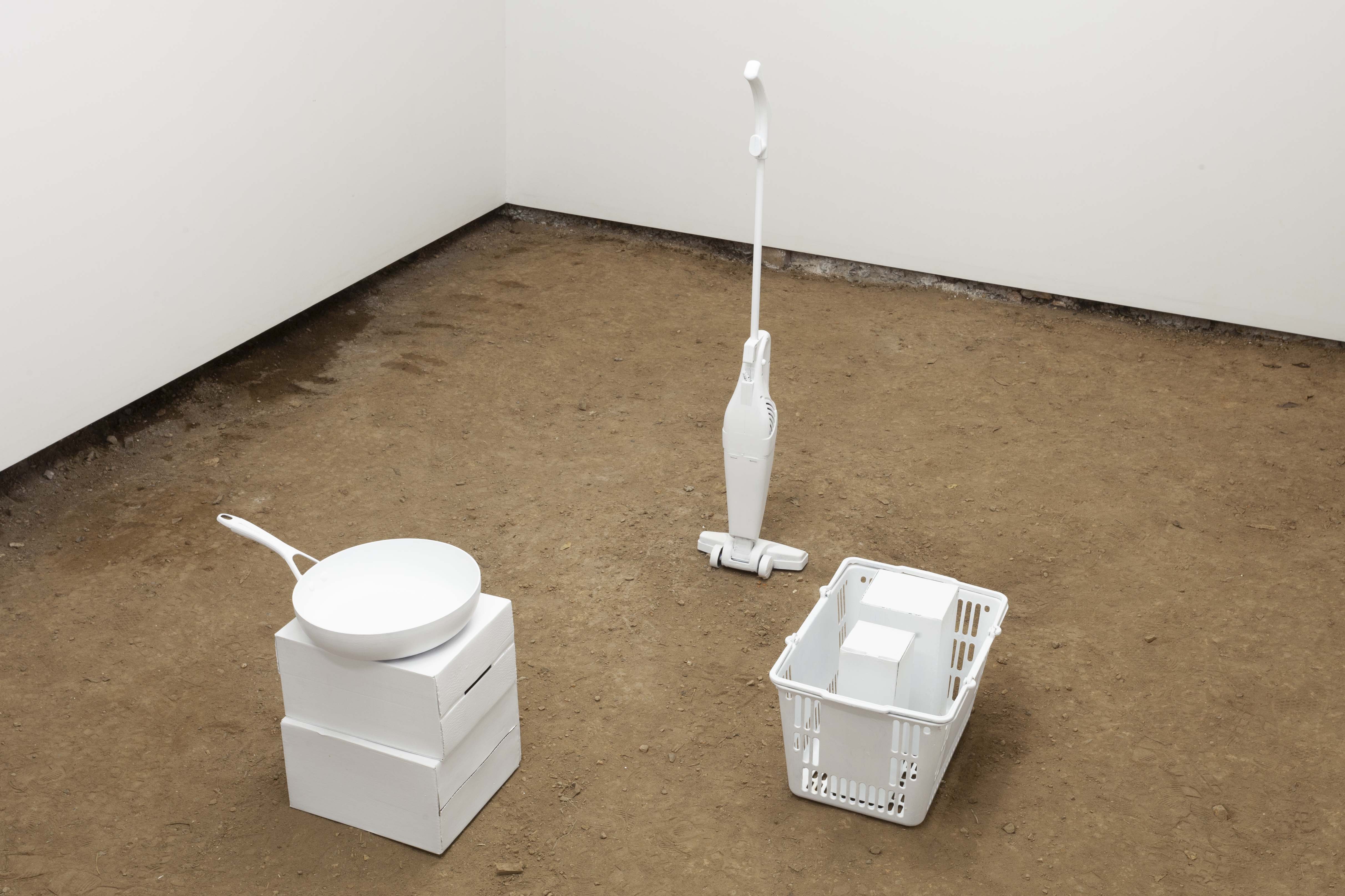 Two cardboard boxes are covered with a generous lick of white interior paint and stacked.
